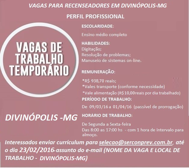 Vagas para recenseadores em Divinópolis-MG.
