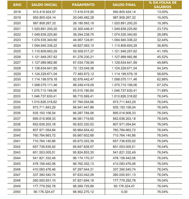 Financiamento do Déficit Técnico Atuarial – Fonte: RTM Consultores Associados