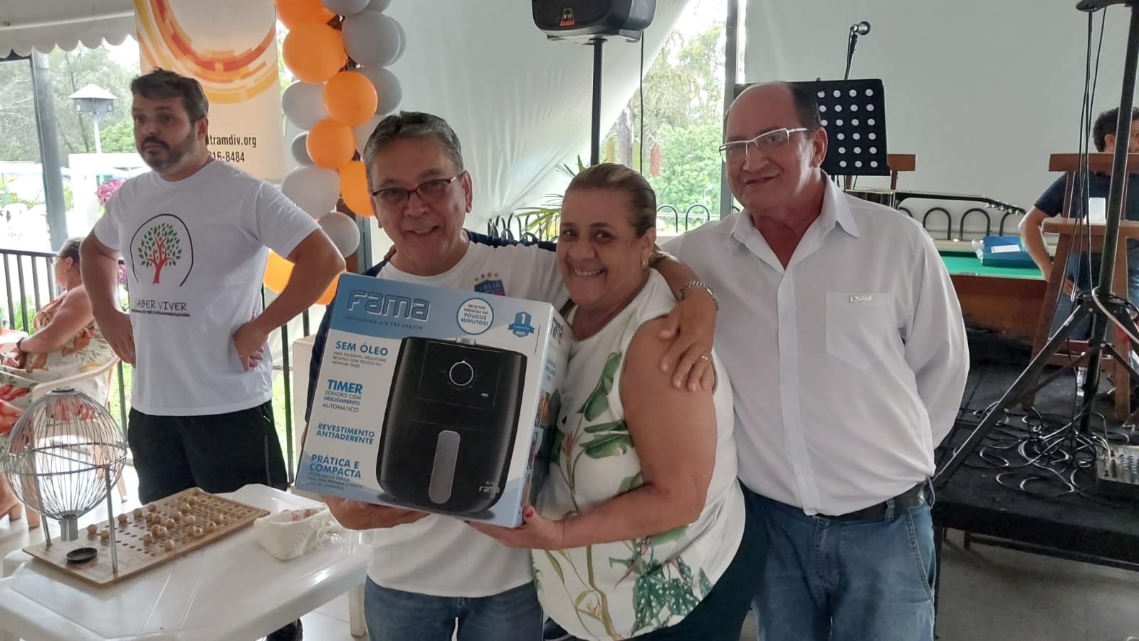 Ao som de Juninho Chula, a tarde foi repleta de muita música e comida boa. Outra atração foi à participação de Willian Vinicius que animou ainda mais os participantes com atividades de ginástica laboral e dança. O tão esperado bingo fechou com sucesso a tarde, tendo como brindes: 1 Airfryer, 1 liquidificador e 1 micro-ondas doados pelo SINTRAM, 1 Airfryer doada pela Privatiza Investimentos e o valor de R$500,00 em dinheiro doados pela equipe de servidores do DIVIPREV.